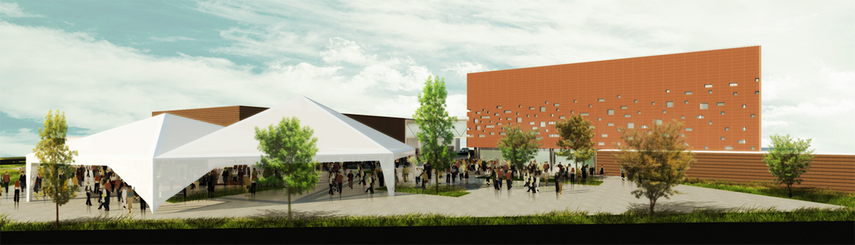 A edificação foi implantada no centro do terreno perpendicularmente ao eixo NE-SO, esta situação ocasionou a divisão do terreno em duas porções defluindo na separação entre estacionamento e esplanada. Na porção SO do terreno está a esplanada, uma área aberta concebida para receber grandes eventos externos.